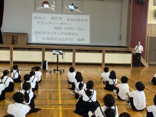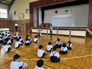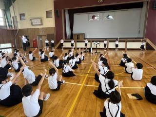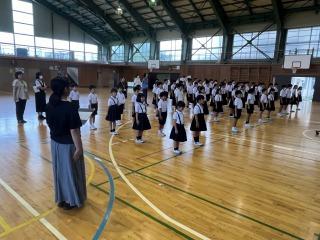 1限目に2.3.5年生の体育で着衣泳を体験しました。水泳や水遊びで水難事故になった時、救助までの間 、浮いて待つことが自分の命を守ることになります。今回、体験したことがいざという時に役立つと思います。夏休みは水に親しむ機会が多いと思いますが、子ども達には安全に十分気をつけて楽しんでもらいたいと思います。