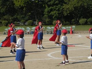 朝の応援練習では、赤白どちらの組も、プレイルーム・体育館中に響き渡る力強い声が出ていていました。この力強い声なら、運動場でも「勝つぞ!」という気持ちが伝わります。