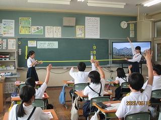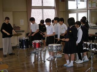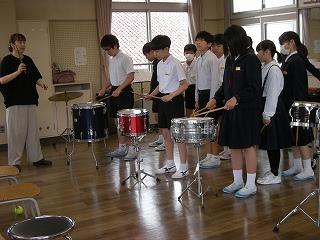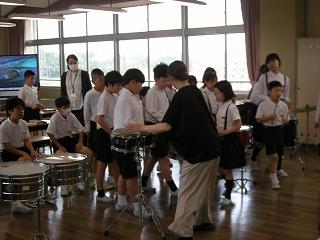 2限目にゲストティーチャーの横山先生をお迎えして、打楽器演奏のご指導をいただきました。ばちの持ち方や叩き方等で、同じ楽器でもずいぶんと音色が違うことを実感できました。6月の市小学生音楽会への意欲もさらに高まりました。