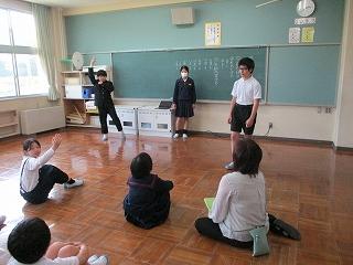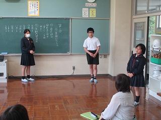給食後の時間に読み聞かせボランティアグループ「ひみつのポッケ」さんが3,4年生に読み聞かせをしてくださいました。子どもたちは、紙芝居「とんだとんだコウノトリ」のお話を楽しみました。5月は愛鳥週間があったので、お土産に羽ばたく鶴の折り紙をいただきました。鶴の羽のはばたかせ方も教えていただき、みんなでためしてみました。