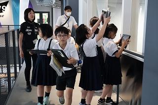 子ども達はタブレット端末で写真撮影したり、製品の実物をさわったりしながら、工場ではどんな仕事をどのように行っているのかをくわしく学ぶことができました。