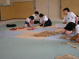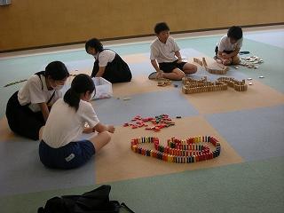 ☆今・昔遊びクラブ 思い思いにドミノを組み立てました。きれいに倒れてスッキリ!