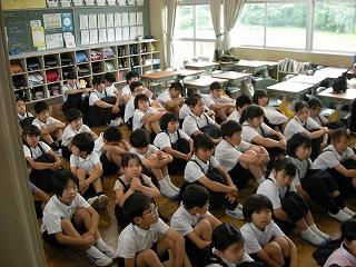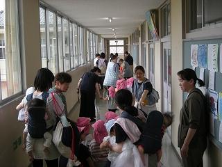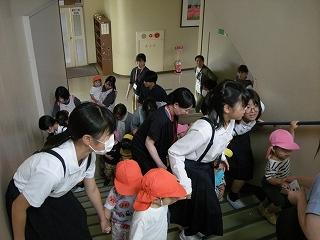 大雨により大海川が増水したという想定で、長休みの時間に、大海こども園と合同で水害避難訓練を行いました。園児たちは外階段と職員玄関の2か所から校舎に入って、3階まで上がり、大海小1~4年生は各教室から3階に上がりました。6年生は園児の避難誘導を行いました。学校ではこのように避難しますが、一昨年の大雨の時のように、各自が家にいる時、洪水の危険性が高まったらどう行動するのか、ぜひ家の人と話しておいてほしいと思います。