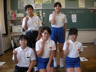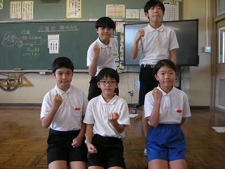 ☆27日の運動会に向けて本格的な練習が始まります。そのため、今日の昼休みに4~6年生の応援団が集合して、顔合わせを行いました。赤白各組5名の応援係の人たちが競技や演技の応援を頑張ります。6年生の団長を中心とした応援団の力で運動会を盛り上げていきましょう!!