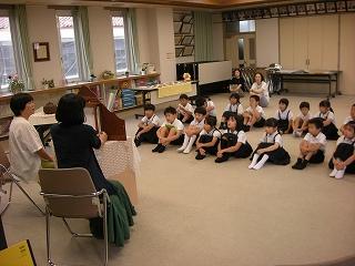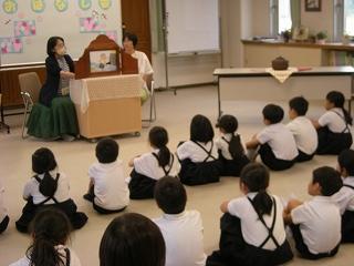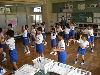 9/9 運動会応援練習  1,2年生:「ひみつのポッケ」さんお話会