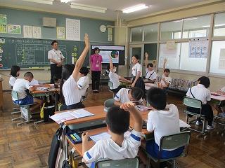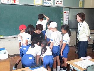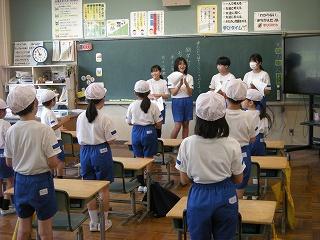 ☆4限目にPFUブルーキャッツの川添選手、バルデス選手に来校していただき、全校児童の前でプレーを披露してもらいました。その後、栄養士資格を持つ藤倉選手が考案した給食を、5年生の子ども達が川添選手、バルデス選手と一緒においしくいただきました。地元で活躍するスポーツ選手のレベルの高いプレーを、子ども達が間近に見る貴重な機会となりました。本当にありがとうございました。