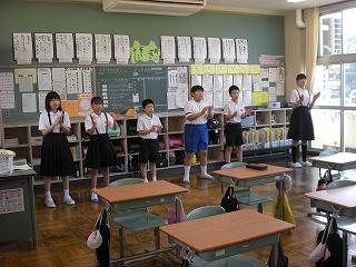 今日から玄関前で朝のあいさつ運動が始まりました。5日まで地区別登校班ごとに行います。子どもたちが朝から互いにあいさつをし合い、気持ちよく1日がスタートしています。あいさつ運動が終わっても元気なあいさつを心がけてほしいと思います。