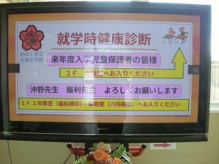 午後に来年度入学予定の年長児さんの就学時健康診断、保護者入学説明会を行いました。来年4月に大海小学校の新入生として入学してくれることを楽しみにしています。大海っ子と先生たちが待っています!