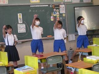 ☆1限目に開会式、準備体操、応援合戦、整理体操、閉会式の練習を行いました。今日はあいにくの雨でしたが、体育館に応援合戦の大きな声が響き渡っていました。応援係の子たちのがんばりが全校の子ども達に伝わっています。