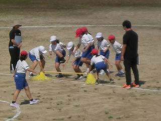 チームの仲間と協力して走り、跳べるためのコツをつかむために練習しました。