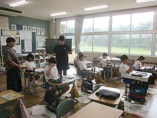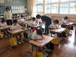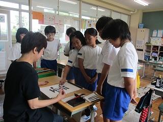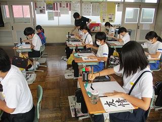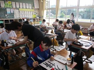 今日は、竹中先生に書写指導をしていただきました。筆づかいや字形など、ていねいにご指導いただき、それを受けて各自で練習しました。どの子も集中して書いていました。