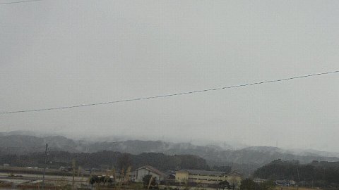 雨にけむる宝達山、今朝は冷たい雨で視界がごらんのとおり。