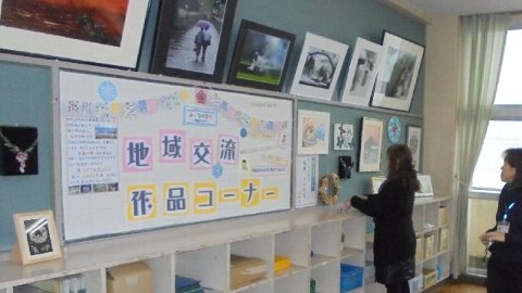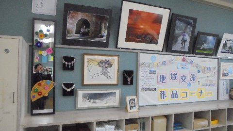 3階の児童会室壁面を利用した地域交流コーナーに新しい作品を加えました。
