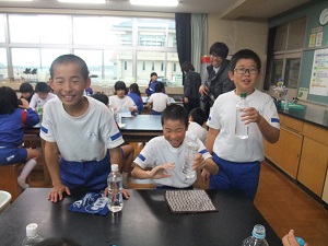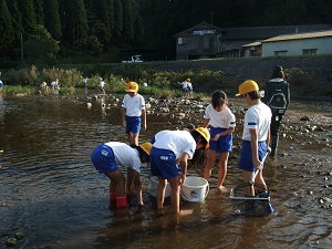 4月から大海川でアユの放流、ゴミ拾い、生き物調べ、水質検査など学習を深めていた4年生・・・集大成のような体験です