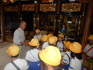 お寺で地域の方の集まりを見学(仏具の磨きものをされていました)