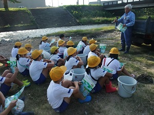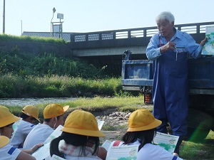 漁協組合長竹多さんに大海川にいる魚について教えて頂いた後