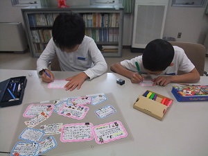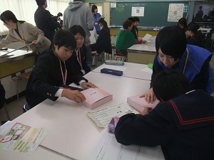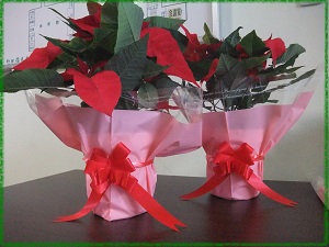 全校でメッセージカード作り、ポインセチアの鉢植えをラッピングなど