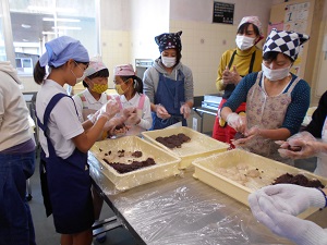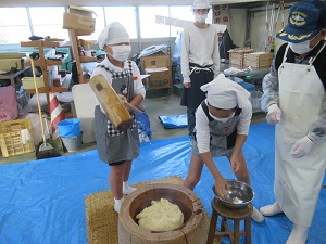 5年生とその家族もたくさん参加して子どもたちは楽しみながら餅をついておいしいお餅がたくさんできました。
