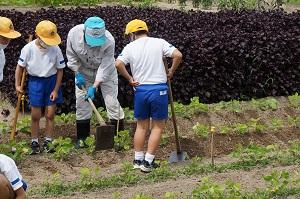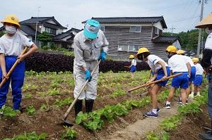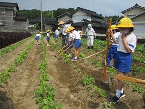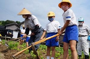 瀬戸町の畑に行き、土寄せ作業を体験しました。