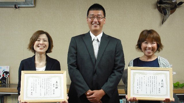 毎年、4月のPTA総会で活動に顕著な貢献をなさった方々を表彰しています。今年度は西野さんを始め3名の方を表彰する予定でしたが、当日は西野さんだけが出席でした。都合が悪かった古川さんと藤本さんに昨日夕刻改めて学校においでいただきました。林会長よりお二人の功績に対して表彰状を送らせていただきました。長い間ありがとうございました。これからもご支援願います。