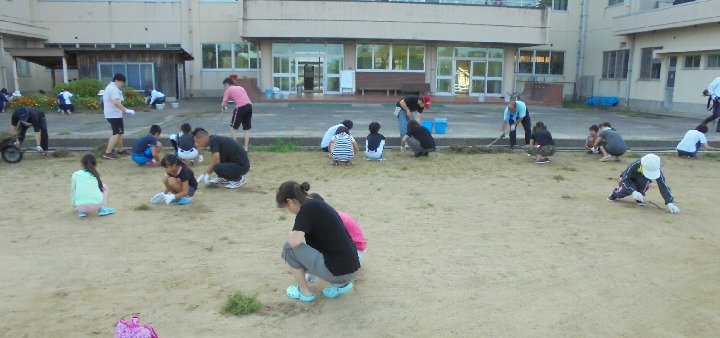 日曜の早朝にもかかわらず、ほとんどのPTA会員の方が集まって下さいました。おかげさまできれいな運動場で運動会を開催できます。皆さんできれいにした運動場で子どもたちが躍動する・・・今から楽しみですね。本当にありがとうございました。
