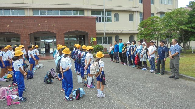 大海小学校では、毎年高学年の宝達山登山にPTA・保護者の皆さんの有志がサポートして下さる伝統があります。今回も十余人のサポーターが参加して下さいました。