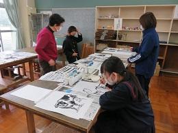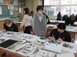6年生は水墨画家として有名な吉田佐蘭先生に教えていただき、水墨画に初挑戦しました。初めて体験する学習でしたが、丁寧に教えていただきながらなかなかの出来の「丑」作品が完成しました。