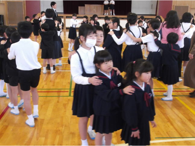 昨日、5限目に「1年生を迎える会」を行いました。全体的な企画や運営は6年生が担当しました。6年生に手を引かれ1年生が体育館に入ってきました。今年の1年生もしっかりしています。会の終わりの感想タイムでは、自分の意見をみんなの前で大きな声で話すことができました。じゃんけんで負けると自分の背中に勝った人がつながる「じゃんけん列車」がおもしろかったようです。