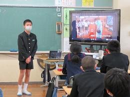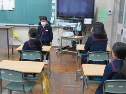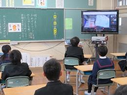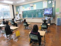 3学期スタートの始業式は、コロナ感染予防と体育館内温度を考慮し、Googlemeet(グーグルミート)を使って放送室スタジオと各教室とをつないで行いました。画面を見ながらでしたが、どの学年も集中して話を聞くことができました。