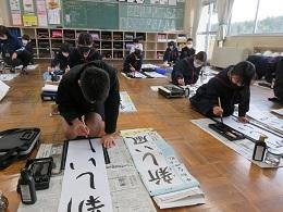 新年行事の書初め大会では、冬休みに練習した成果を発揮して、どの学年も勢いのある作品ばかりでした。今年一年、誰もが読みやすい字を心がけ、『丁寧に書く』ことを大事にして欲しいと思います。