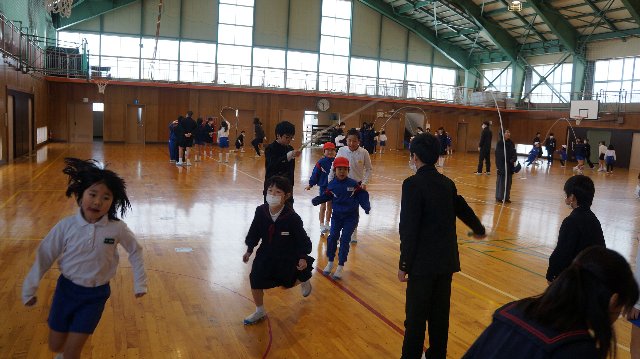 長休み、いつもの通り全校が体育館に集まり、ながなわ跳びをしました。大雪で昨日まで休みになってしまいましたが、今日は何事もなかったかのように日常が戻って来ました。