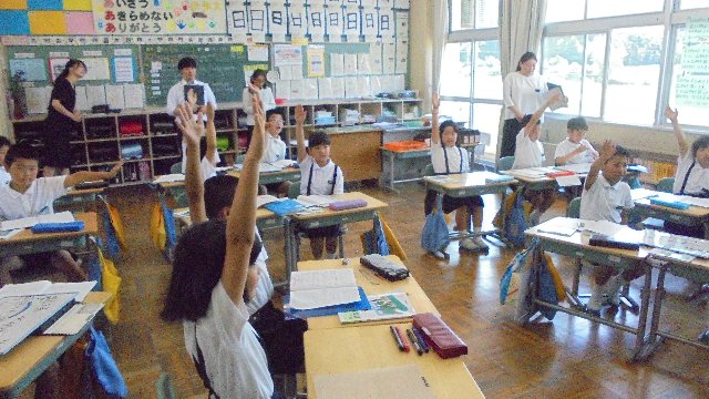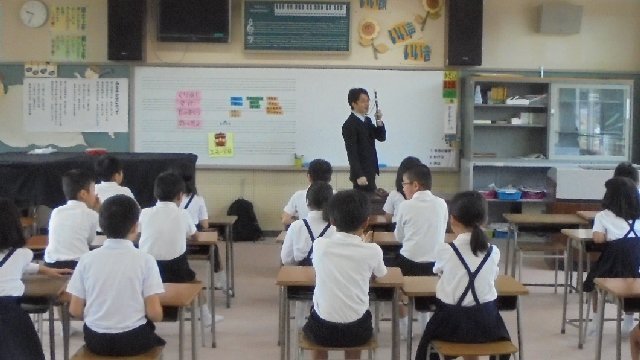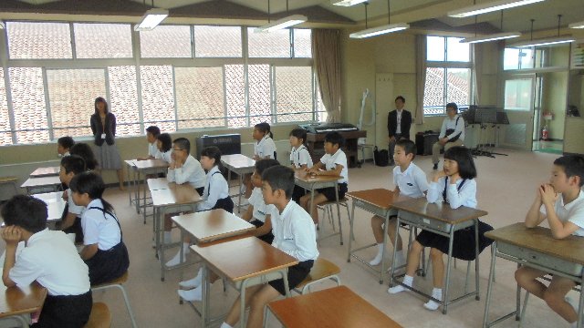 その後講師の先生がお帰りになるとき、子どもたちの聞く態度・反応がすばらしいとたくさんほめて頂きました。また体育館を通ったときに聞こえた5.6年生の器楽合奏がとても上手だともおっしゃっていました。うれしいことばかりです。