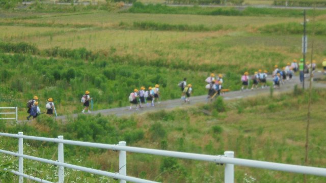 下の写真で先頭のリーダーが後ろを振り向きながら歩いているのがわかりますか。すばらしいですね。