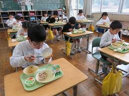 かほく市の給食は、ふるさとかほく市の特産物や、他県、世界各国の給食等、毎日美味しい給食が工夫されて提供されています。今回は絵本給食でした。図書館司書の先生の絵本の朗読を聞きながら、子どもたちは、笑顔で美味しそうに食べていました。まだまだ寒い日は続きますが、大海っ子たちは、給食でエネルギーをチャージして頑張っています。