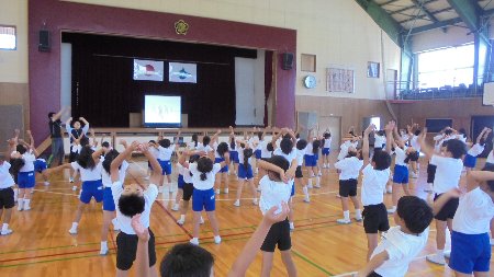 今日も欠席がありませんでした。1学期の授業日は71日間でした。全校全員登校の日が41日間もありました。すばらしいことです。2学期も・・・そのためには早寝早起きをして夏休みも元気に過ごして下さい。一日のスタートはラジオ体操から。終業式の後全員でみっちり練習しました。
