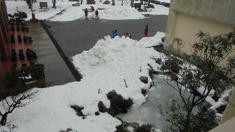 路面のアスファルトがしっかり見えるようになり、ずいぶん歩きやすくなりました。今日もスコップでボランティアの方々が除雪でできた塊を崩して下さっていました。次の寒波前に少しでも雪が少なくなってほしいです。