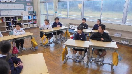 大海小学校には、「あんこ」と「きなこ」というウサギが2羽飼育小屋で飼われていて、全校児童からかわいがられています。今日の授業ではこの2羽のウサギに加わってもらい、ウサギも同じ生き物、私たちと同じ大切な一つの命だということを学びました。暖かい体温を直に感じ、ウサギと自分の心音を聞き比べ、子どもたちは命の大切さ、相手に対する思いやりの心の大切さを実感できたことでしょうお家でも感想を聞いてあげて下さい。