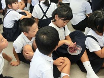 8月6日の平和学習の後、高松中学校の一年生が育てたブドウを全校児童でいただきました。甘くてとてもおいしいブドウでした。