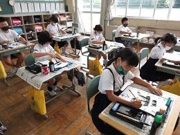 県内のコロナ感染者が減少傾向にありますが、2年生も家庭学習を想定し、リモート学習を試していました。3年生は、今月の生活目標の『ふわふわ言葉』について話し合いをしていました。日々、いろいろな学習が行われています。