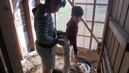 今日は、土曜日授業参観の代休でした。休みにもかかわらず、飼育委員がきちんとうさぎの世話をしに来てくれます。本当に感心です。