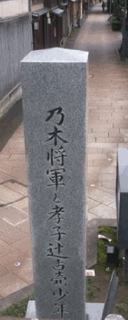 さて、辻占にまつわる話と言えば乃木希典陸軍大将と辻占売りの少年の話。乃木希典が陸軍少将の時代、用務で金沢を訪れた時のことです。乃木希典は金沢で偶然、今越清三郎という少年に出会います。その少年は、辻占売りを営みながら一家の生計を支えていました。この姿に感銘を受けた希典は、少年を励まし、当時の1ヶ月分の生活費を手渡しました。今越少年は、「一生懸命努力をして、立派な人間になるように。」と言われ、後に金箔業の世界で成功し、大きな実績をあげました。