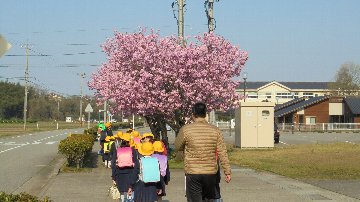 通学路を歩いていると季節を感じることができます。今の季節だと「桜の花」です。もう散ってしまいまた来年まで・・・とさみしい気持ちになりますが、今が盛りの桜を2つ紹介します。どこにあるかご存じですね。