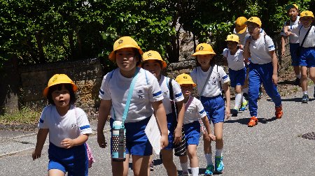 すばらしい青空の下、大海小学校全校による「なかよし遠足がありました。朝からみんなわくわくわでした。