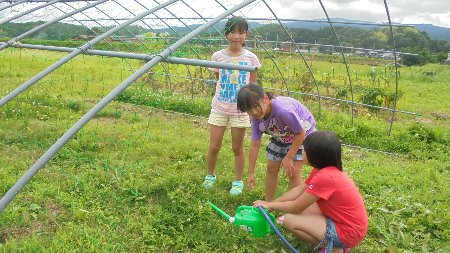 4年生以上が朝当番の仕事をしに学校へ来ます。児童玄関前のプランター、運動場側の花だん、畑の水やり。梅雨だというのに雨が降らず、ちょっとうらめしいです。