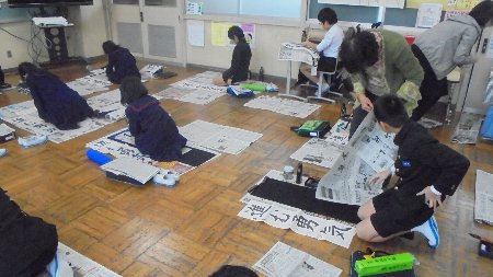 各学年書き初めの宿題が出ています。学校では八野の城村先生に今年も習いました。紙はそんなにありませんがご家庭では家族で書き初めをすると楽しいですよ。1月2日に書き初めすると字が上手になるそうです。ぜひお家の人の腕前を見せてあげて下さい。(笑)予定に入れてみてはいかがでしょうか。