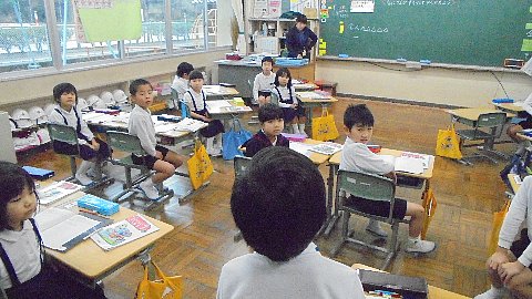見て下さい、このりりしい姿。発表する人の方をきちんと向いて話が聞ける・・・とても1年生とは思えません。もういつでも2年生になれますね。素晴らしいです。