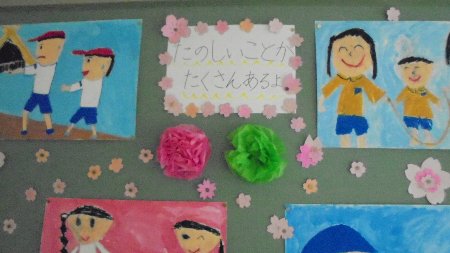 学校では、子どもたちを迎える飾り付けや机椅子の移動も完了しています。特に新入生を迎える用意が華やかです。写真でご覧下さい。外のベランダにはチューリップが大きなつぼみをつけ始めました。
