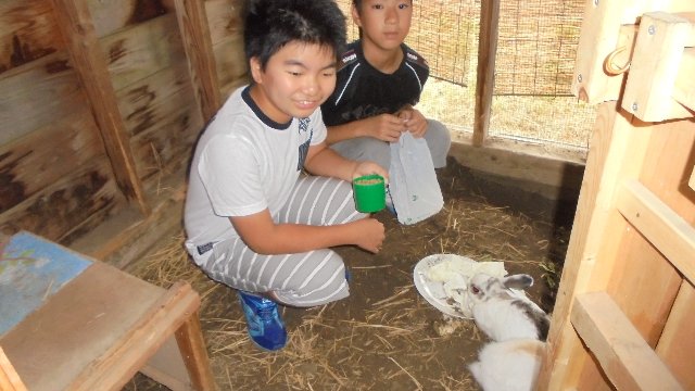 小雨の中早くから二人そろって当番に来てくれました。自転車にはヘルメット、ルールを守ってえらいですね。家からおいしそうなキャベツも持参してくれました。ありがとう。