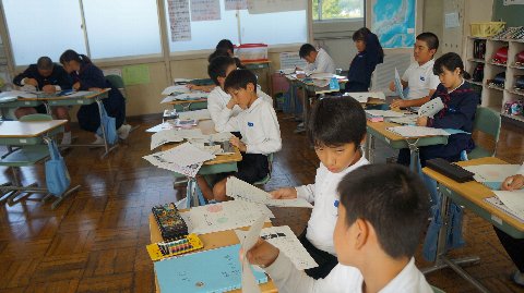 先日紹介した5年生の漢字学習、問題ができあがり先生に挑戦してきています。