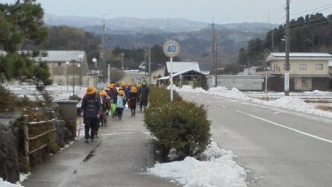 雪は溶けたけど、道路が凍ってすべりました。尻餅をついている子も見かけました。特に坂道は要注意です。あと二日元気に安全に登校して下さいね。